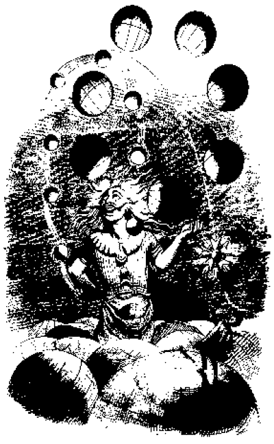 To settle this question a fourth generation of the egg was evolved and tested, while simultaneously a burst of research was carried out in the abstruse areas of "Hillbert space" and the topology of n-dimensional geometry, on the intuituve assumptions that new "attractors" could thereby be generated and used to visualize or "grok" the transitions between alternate universes. Again the ICS triumphed...although the immediate success of the fourth-generation egg provoked a moment of fear and panic unmatched in the whole history of "Cognitive Chaos." The first run-through of the "Cat" program was undertaken by a young staff-member of great brilliance (one of the original Paramus runaways) whose nickname happened to be Kitand it happened to take place on the Spring Equinox. At the precise moment the heavens changed gears, so to speak, the entire egg vanished from the laboratory. Consternation would be a mild term for what ensued. For about seven minutes the entire ICS lost its collective cool. At that point however the egg reappeared with its passenger intact and beaming...like Alice's Chesire Cat rather than Schrodinger's poor victim. He had succeeded in riding the wave to its "destination"an alternate universe. He had observed it andin his words"memorized its address." Instinctively he felt that certain dimensional universes must act as "starnge attractors" in their own right, and are thus far easier to access (more "probable") than others. In practical terms, he had not been dissolved but had found the way to a "universe next door." The Gateway had been opened.
