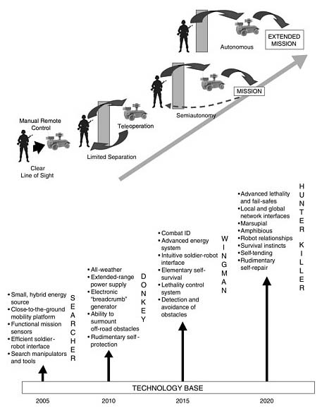A US National Academy of Sciences report, Technology Development for Army Unmanned Ground Vehicles (2002) defines four classes of robot: